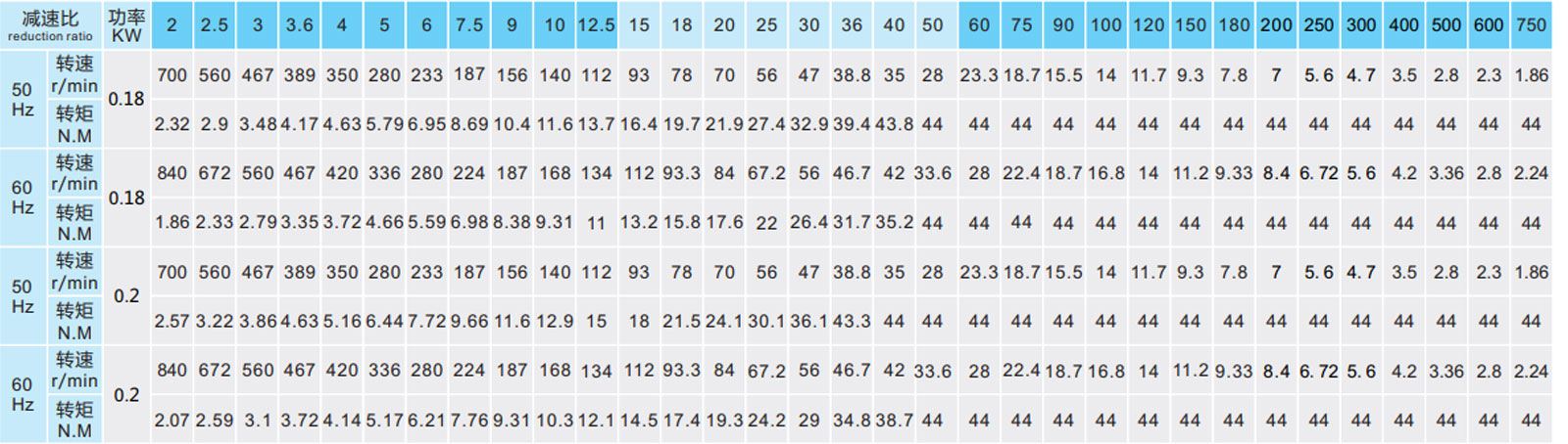 轉(zhuǎn)速是以電動機(jī)的異步轉(zhuǎn)速(50Hz:1400r/min、60Hz:1680r/min)為基準(zhǔn)除以減速比而算 出來的數(shù)值。實(shí)際轉(zhuǎn)速將隨負(fù)載大小變化而有所變化。