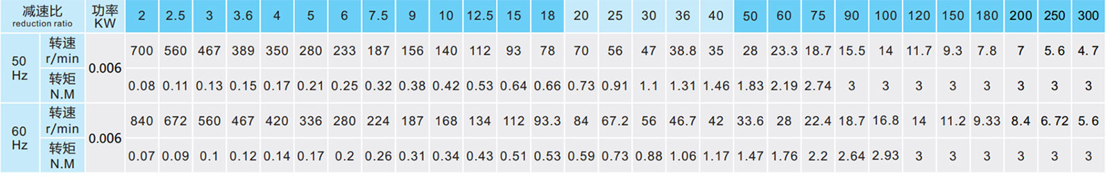轉(zhuǎn)速是以電動(dòng)機(jī)的異步轉(zhuǎn)速(50Hz:1400r/min、60Hz:1680r/min)為基準(zhǔn)除以減速比而算 出來(lái)的數(shù)值。實(shí)際轉(zhuǎn)速將隨負(fù)載大小變化而有所變化。