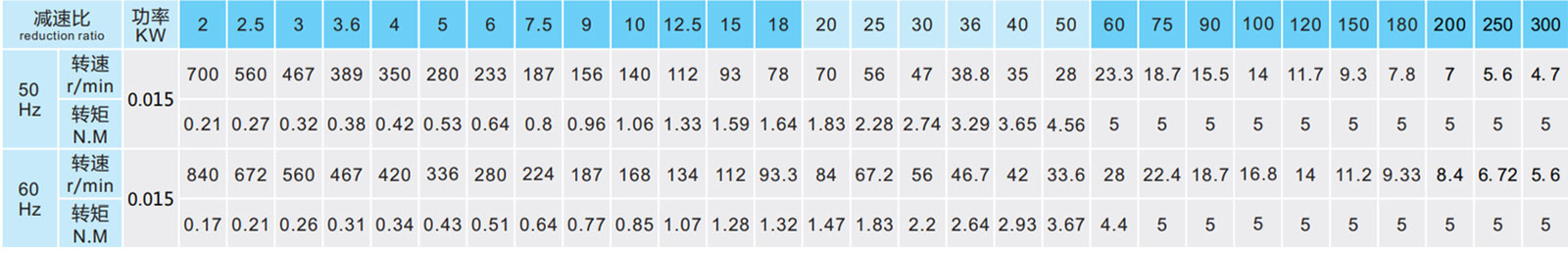 轉(zhuǎn)速是以電動機的異步轉(zhuǎn)速(50Hz:1400r/min、60Hz:1680r/min)為基準除以減速比而算 出來的數(shù)值。實際轉(zhuǎn)速將隨負載大小變化而有所變化。