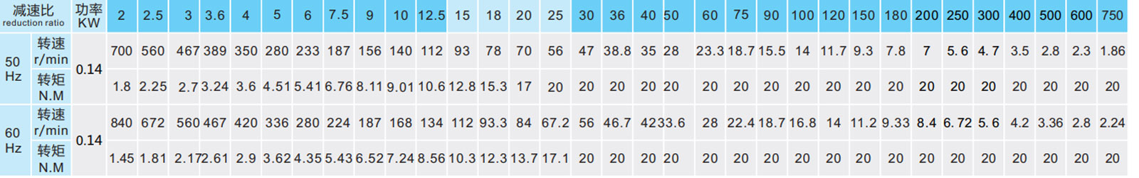 轉(zhuǎn)速是以電動機的異步轉(zhuǎn)速(50Hz:1400r/min、60Hz:1680r/min)為基準除以減速比而算 出來的數(shù)值。實際轉(zhuǎn)速將隨負載大小變化而有所變化。