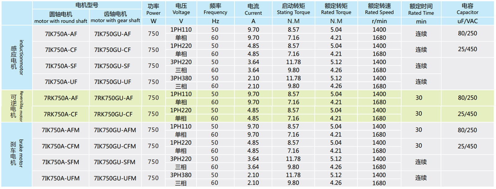 ▲ 注意:使用電壓和機(jī)型不同,電容容量不一樣,訂貨時請務(wù)必指明具體的型號。