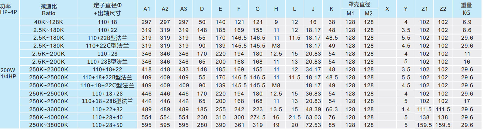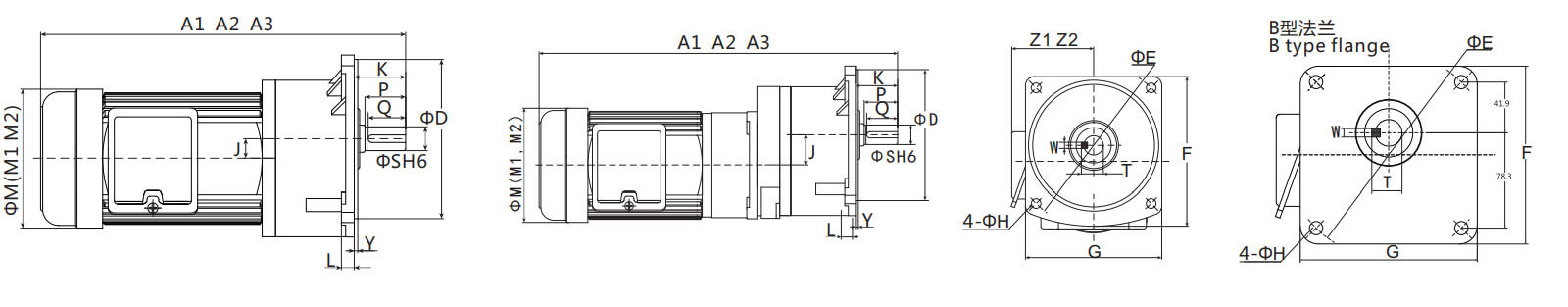 A2、M2、Z2為單相馬達(dá)尺寸。