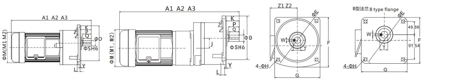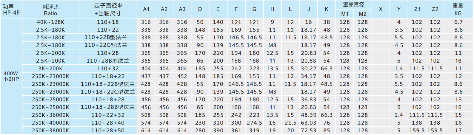 A2、M2、Z2為單相馬達(dá)尺寸。