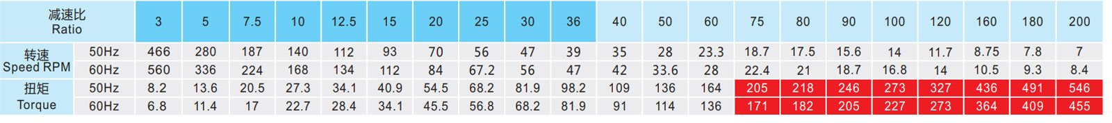 ▲ 表列轉(zhuǎn)速是基于電機(jī)異步轉(zhuǎn)速(50Hz:1400r/min、60Hz:1680r/min),額定負(fù)載時,實際轉(zhuǎn)速為表列轉(zhuǎn)速的80%-98%。