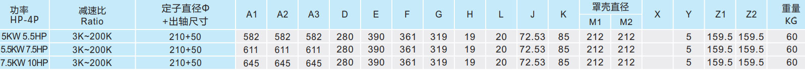 ▲ 表列轉(zhuǎn)速是基于電機異步轉(zhuǎn)速(50Hz:1400r/min、60Hz:1680r/min),額定負載時,實際轉(zhuǎn)速為表列轉(zhuǎn)速的80%-98%。