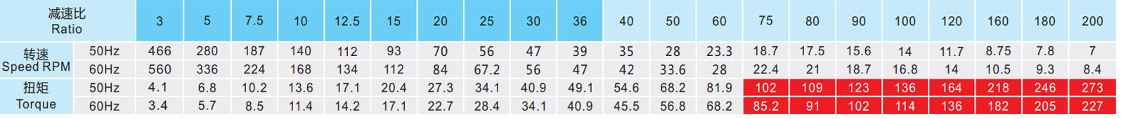 ▲ 表列轉(zhuǎn)速是基于電機(jī)異步轉(zhuǎn)速(50Hz:1400r/min、60Hz:1680r/min),額定負(fù)載時(shí),實(shí)際轉(zhuǎn)速為表列轉(zhuǎn)速的80%-98%。
