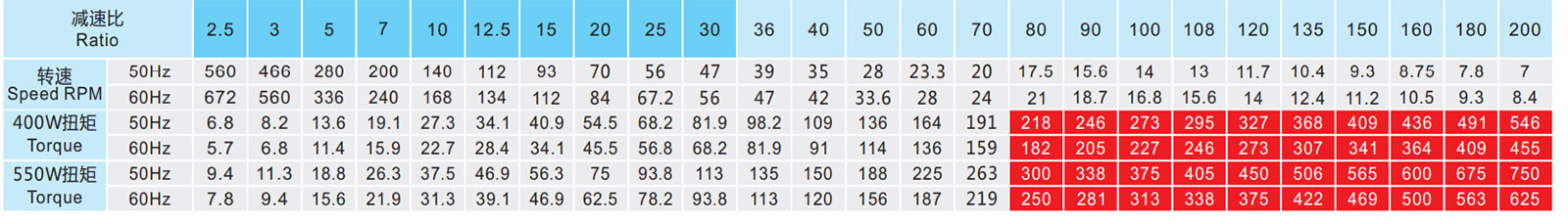 ▲ 表列轉(zhuǎn)速是基于電機(jī)異步轉(zhuǎn)速(50Hz:1400r/min、60Hz:1680r/min),額定負(fù)載時(shí),實(shí)際轉(zhuǎn)速為表列轉(zhuǎn)速的80%-98%。