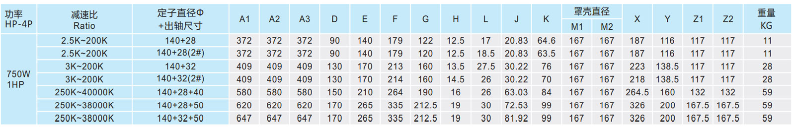 ▲ 表列轉(zhuǎn)速是基于電機異步轉(zhuǎn)速(50Hz:1400r/min、60Hz:1680r/min),額定負載時,實際轉(zhuǎn)速為表列轉(zhuǎn)速的80%-98%。