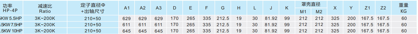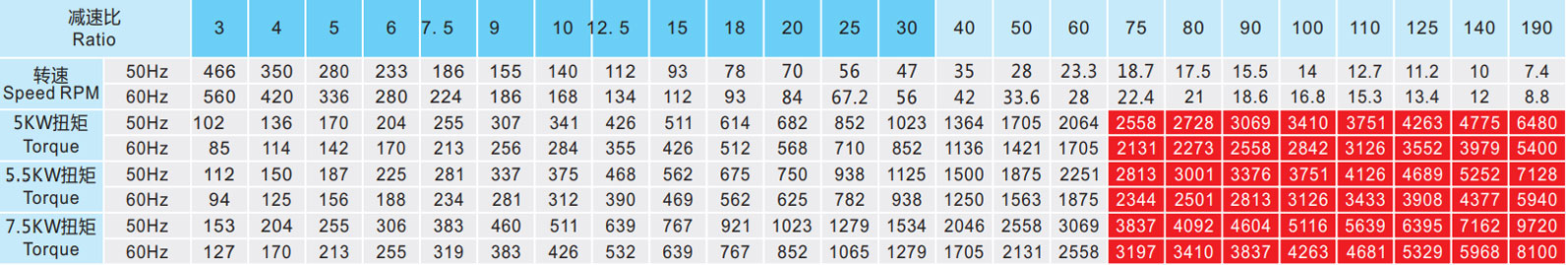 ▲ 表列轉(zhuǎn)速是基于電機異步轉(zhuǎn)速(50Hz:1400r/min、60Hz:1680r/min),額定負載時,實際轉(zhuǎn)速為表列轉(zhuǎn)速的80%-98%。